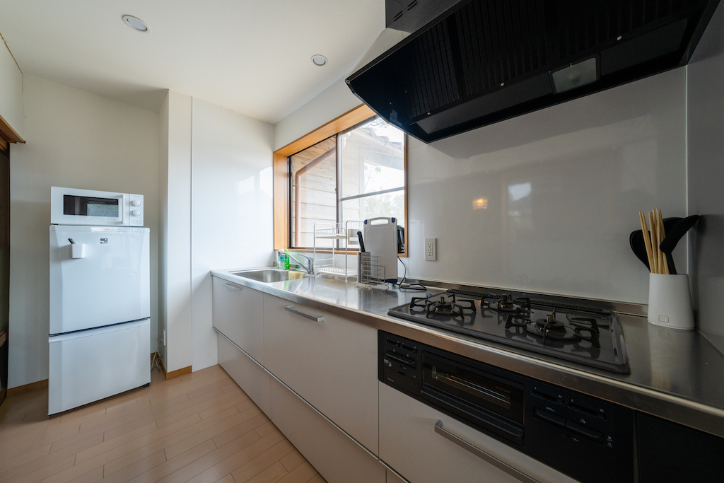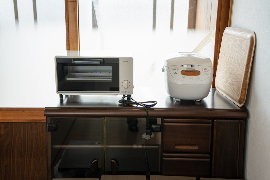 10畳ほどのLDKと個室が4室、敷地内に別棟の倉庫の2階部分に1室の全部で5室。ゆったりとした共有リビング、キッチン、お風呂、洗面、トイレは共有です。生活に必要な家具家電はひと通り揃っているので、すぐに能登暮らしを始めることができます。