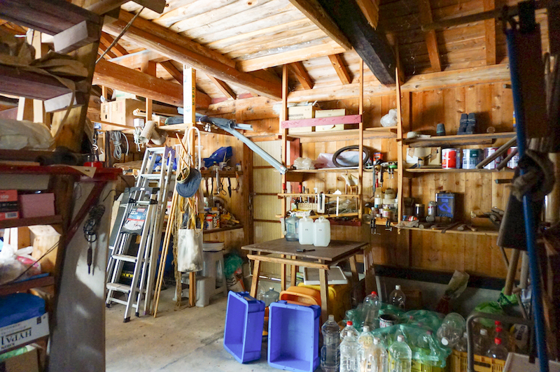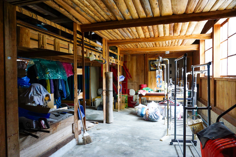 建物は築90年ほどの能登古民家。妻入りの威風堂々とした佇まい、使われている梁や柱も立派です。さらに魅力的なのは付属する納屋。以前お住まいされていた方が野良仕事や大工仕事をするのに使い勝手と心地良さを求めたことが伝わってきます。能登の山間部の暮らしでは、納屋は必須だと思いますがこんな頼もしい納屋がついていたら慣れていない人にとっては厳しい山あいの暮らしも楽しむことができそうです。他にも車庫、別棟の納屋もついています。